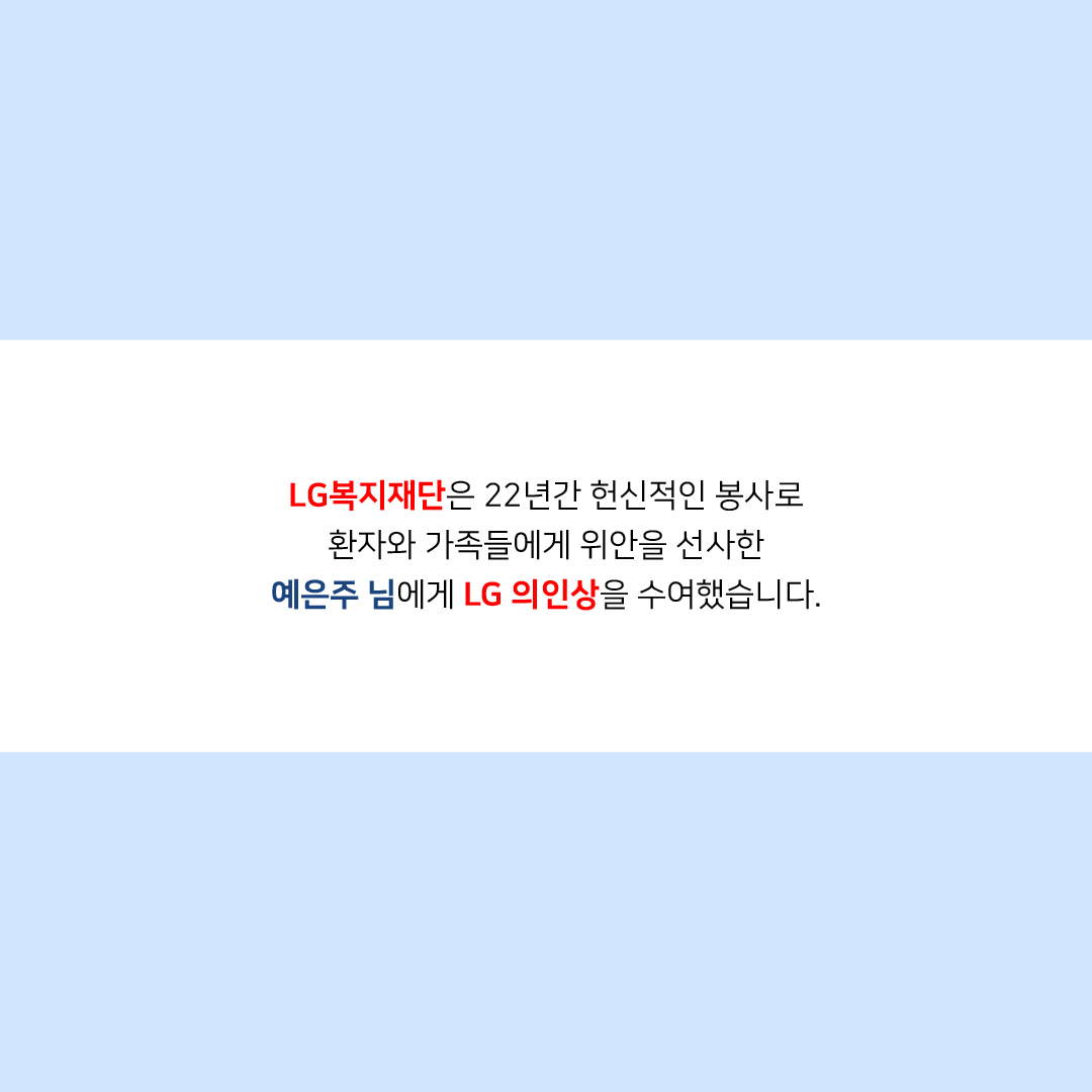 LG재단 » LG 의인상 역대 수상자 » 선행 부문 » 예은주 < LG 의인상 역대 수상자 목록보기 예은주 2025년 09월 16일 / 2025년 / 선행 부문 예은주 2025년 이전 문종준 다음 강태자